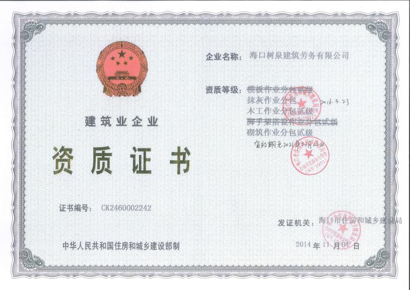 ??跇淙ㄖ趧沼邢薰境闪⒂?011年,公司位于海口,其前身是一家專業建筑施工隊,自2004年即開始在海南從事建筑勞務施工。自成立至今,公司已經擁有一支科學管理、質量過硬、能打硬仗,搶工期的專業隊伍。能獨立承擔大中型工業與民用建筑 、室內外裝修、各類機電設備安裝工程。代表工程有??跒I海華庭、三亞時代海岸T01/02/04/05棟高層、合肥東海花園二期、陵水富力灣B區高層、三亞金中海(酒店)、瓊海大印經典花園、海口環球海景大酒店(四星級酒店,在建中)、陵水珍珠大廈(五星酒店)、??谌f達廣場、美蘭機場二期。